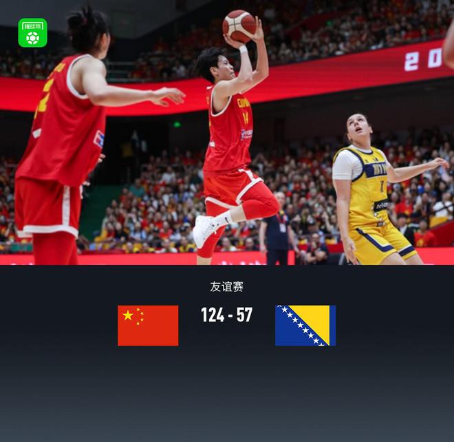 北京时间6月15日友谊赛,中国女篮对阵波黑女篮。半场中国女篮67-21波黑女篮,最终中国女篮124-57波黑女篮。