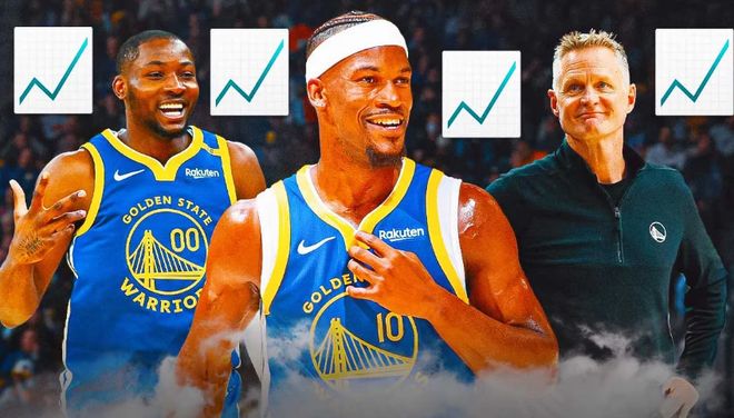 当然,表现最为出色的非库里和巴特勒莫属,尤其是库里,已经37岁的他,赛季至今不仅打出场均27分3.8个篮板5次助攻,外加1.8个抢断的数据,还打进了“190俱乐部”(50.6%+42.3%+100%)。